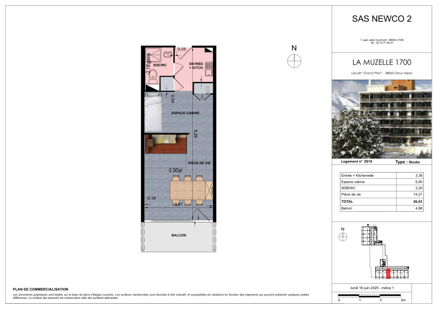 Studio 1 pièce(s) 26.63 m²