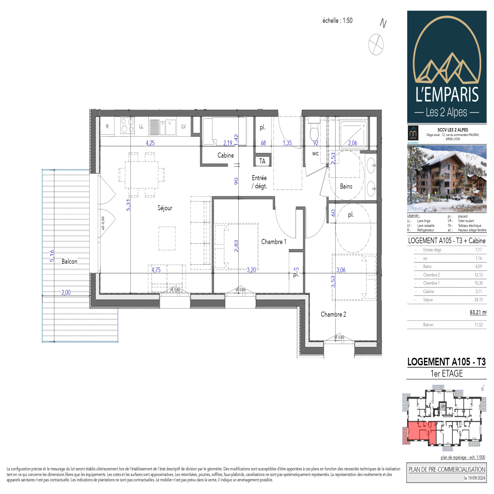 - Surface de 63,21 m²