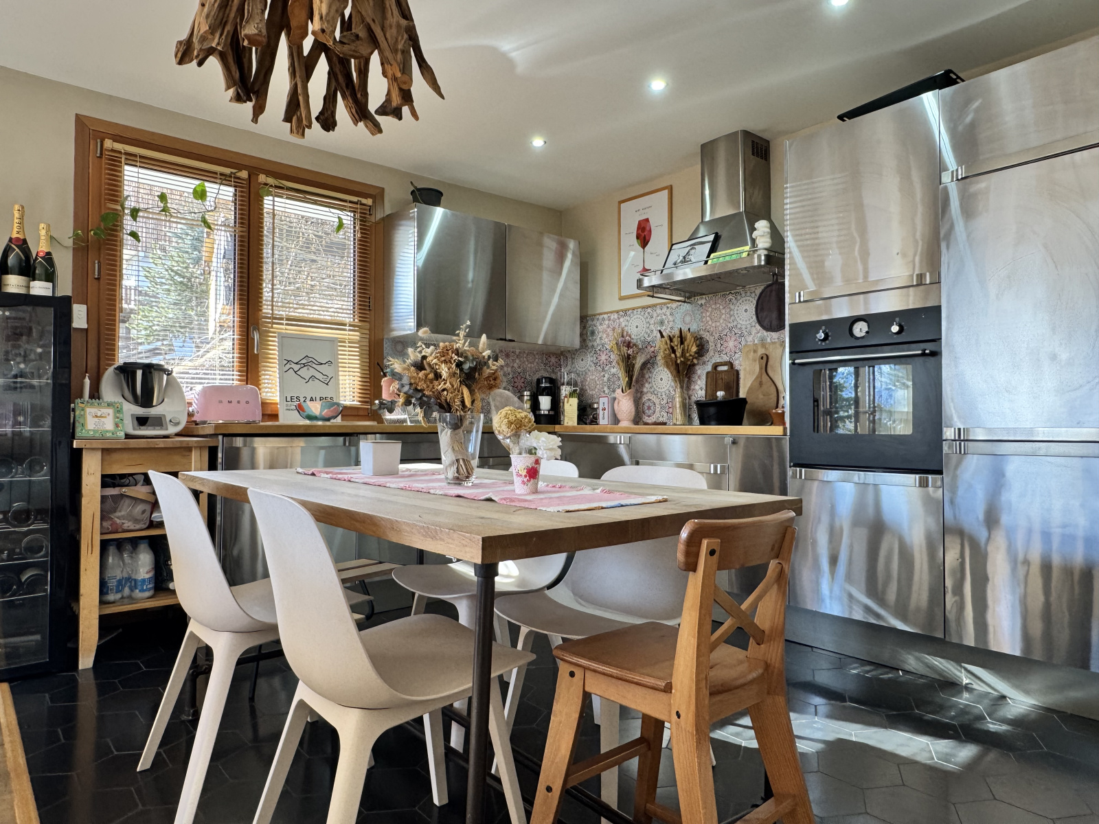 L’appartement réserve également des surprises qui font toute la différence : un garage fermé de 18 m², avec un accès direct de l’appartement, un luxe rare aux Deux Alpes.