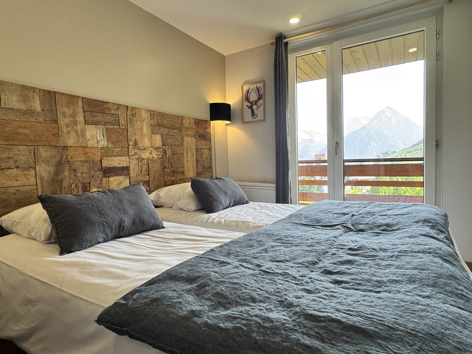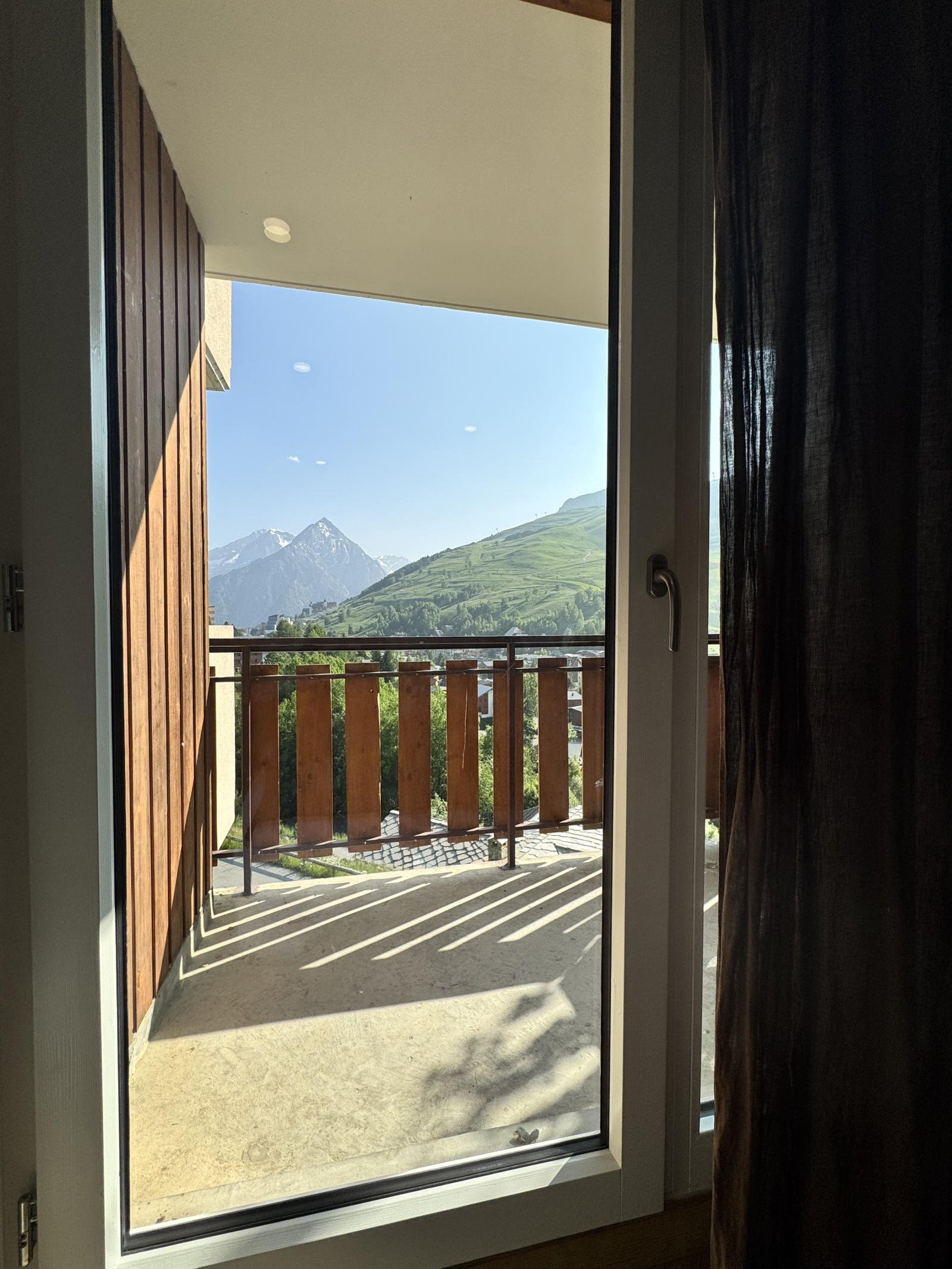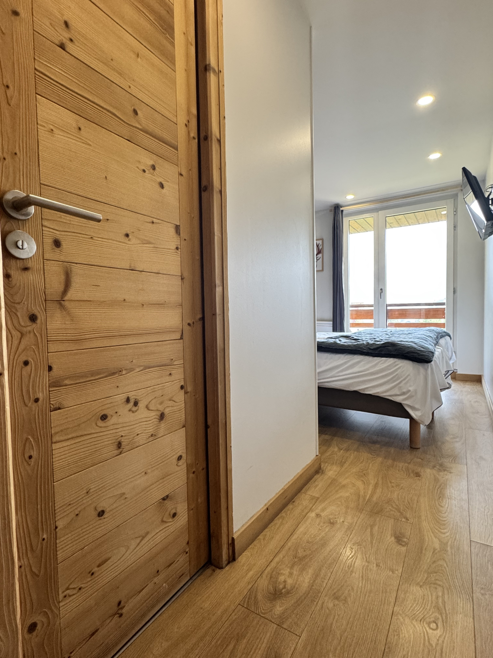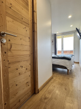 Dès l’entrée, un espace type ski-room permet un accueil pratique pour toute la famille. La cuisine, parfaitement équipée, se prolonge par une salle à manger conviviale pouvant accueillir jusqu’à 10 personnes. Vaste et lumineuse, elle s’ouvre sur un grand balcon exposé sud-ouest avec une vue imprenable sur la Muzelle et les sommets environnants.