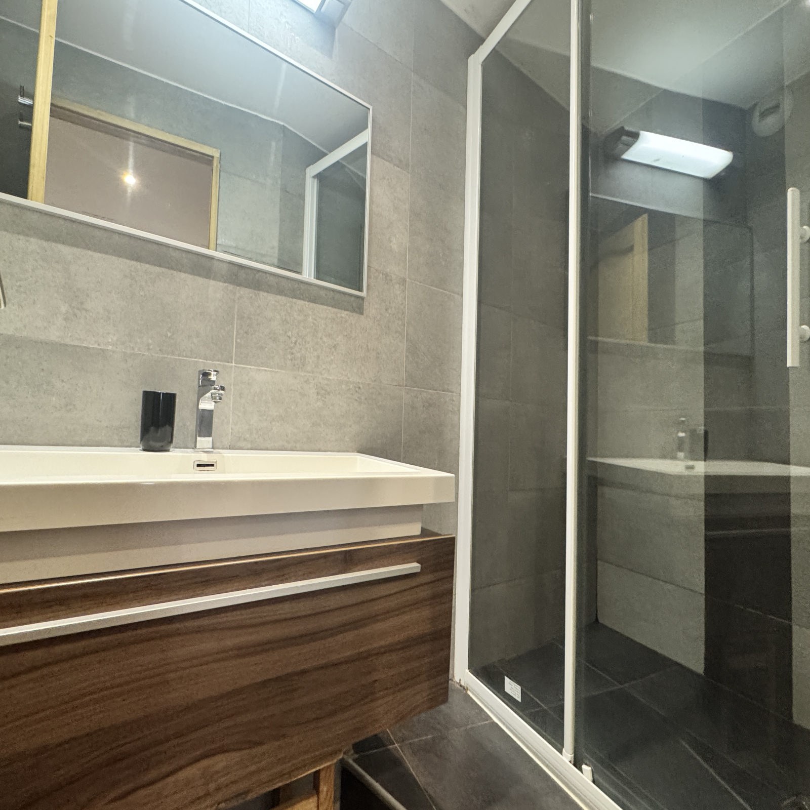 Une salle d’eau fonctionnelle avec douche, WC séparé, un chauffage individuel électrique. Un casier à skis et une cave complètent ce bien.