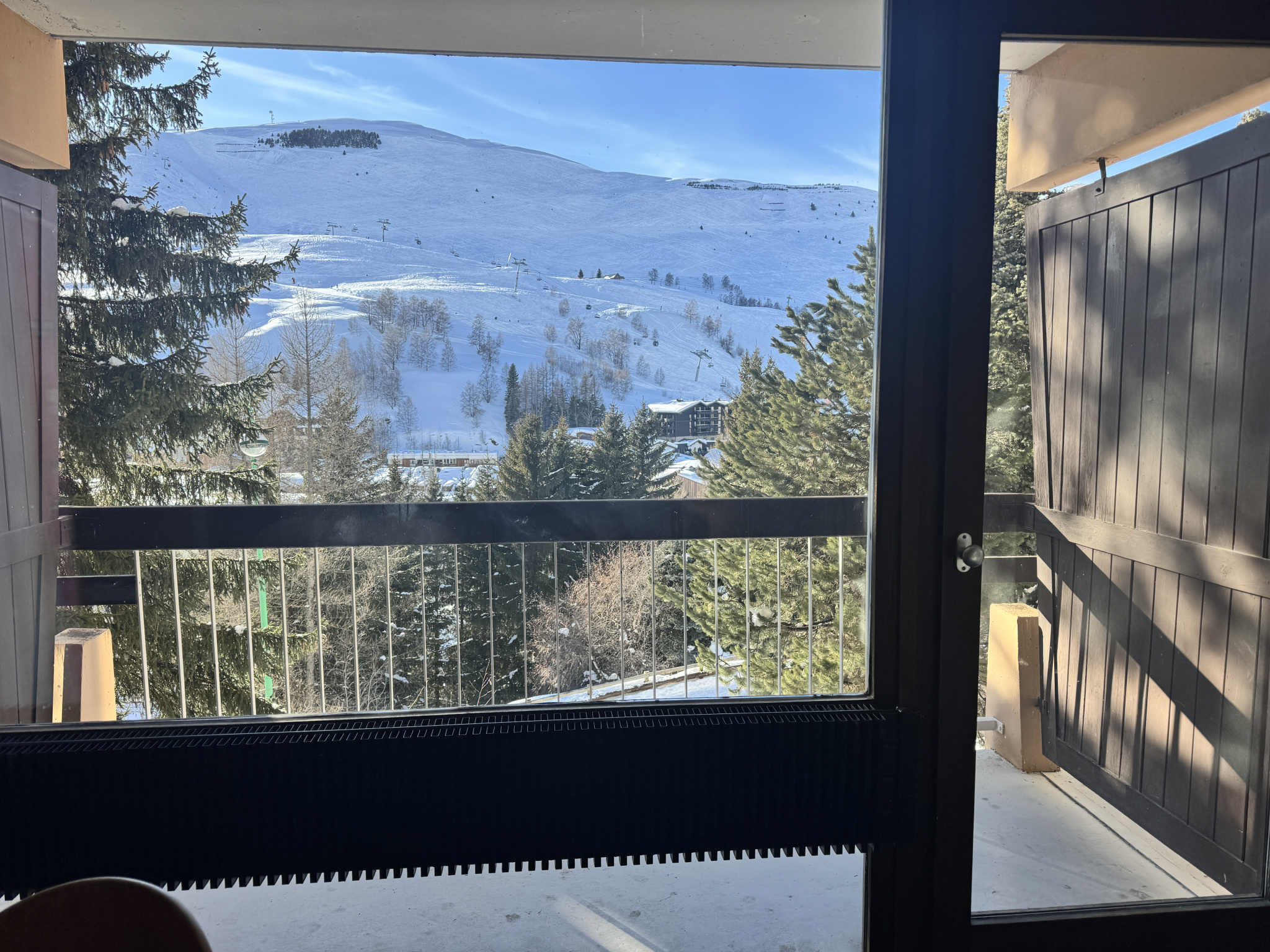 La résidence profite d’un emplacement pratique à proximité immédiate des pistes, permettant de rejoindre rapidement la Petite Aiguille, puis l’ensemble du domaine skiable via le télémix de Belle Étoile.