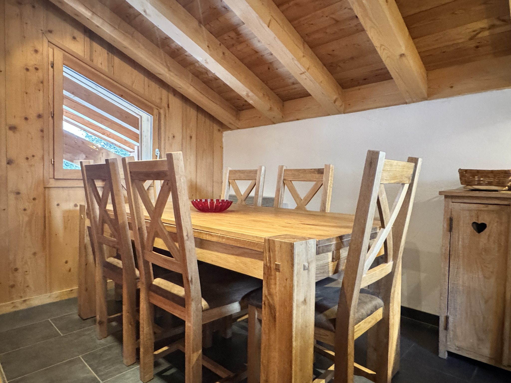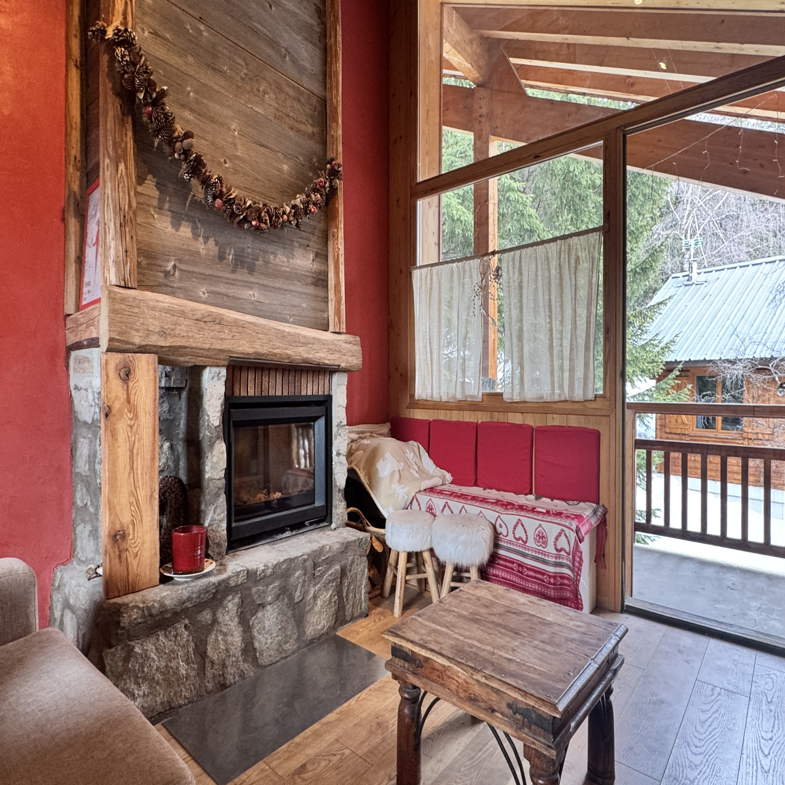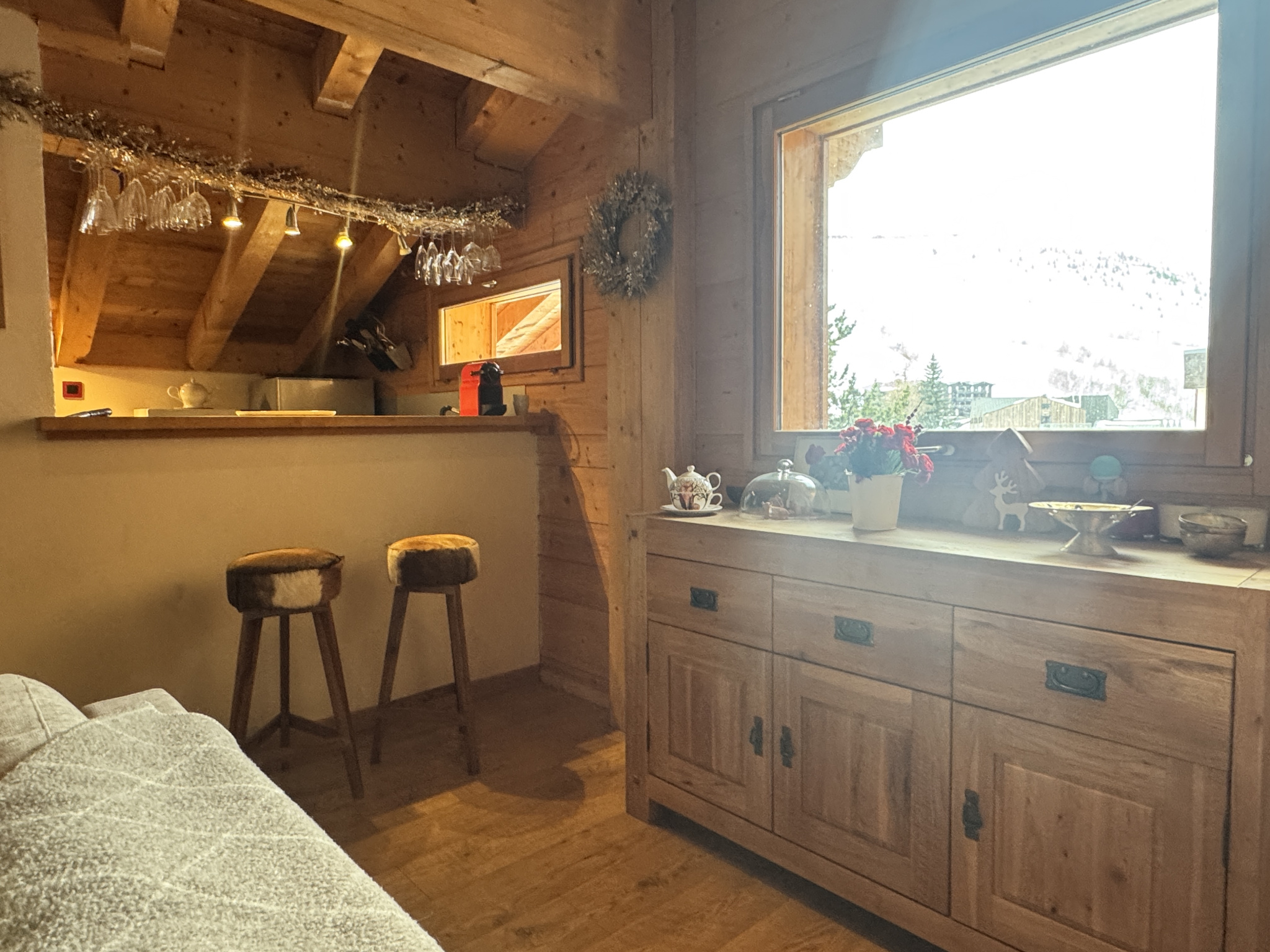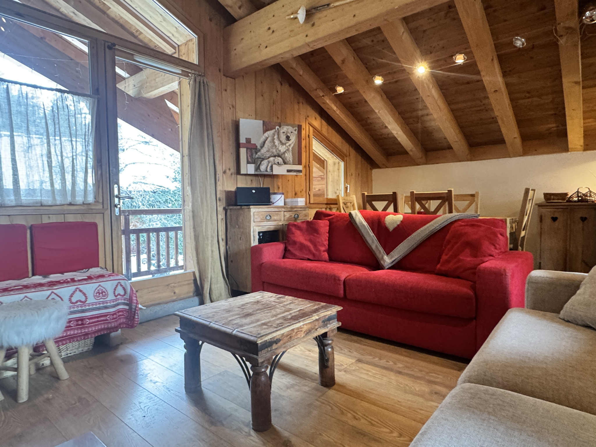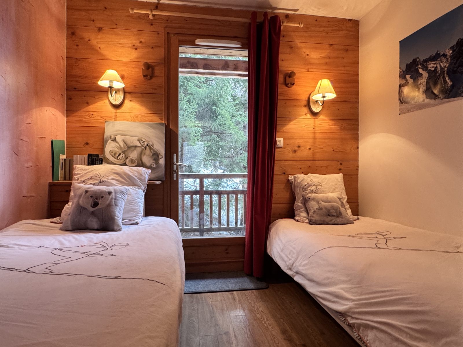 L’ensemble est chaleureux, intime, presque confidentiel, avec d’un côté une vue sur les pistes de Vallée Blanche, de l’autre les bois et les chalets environnants.