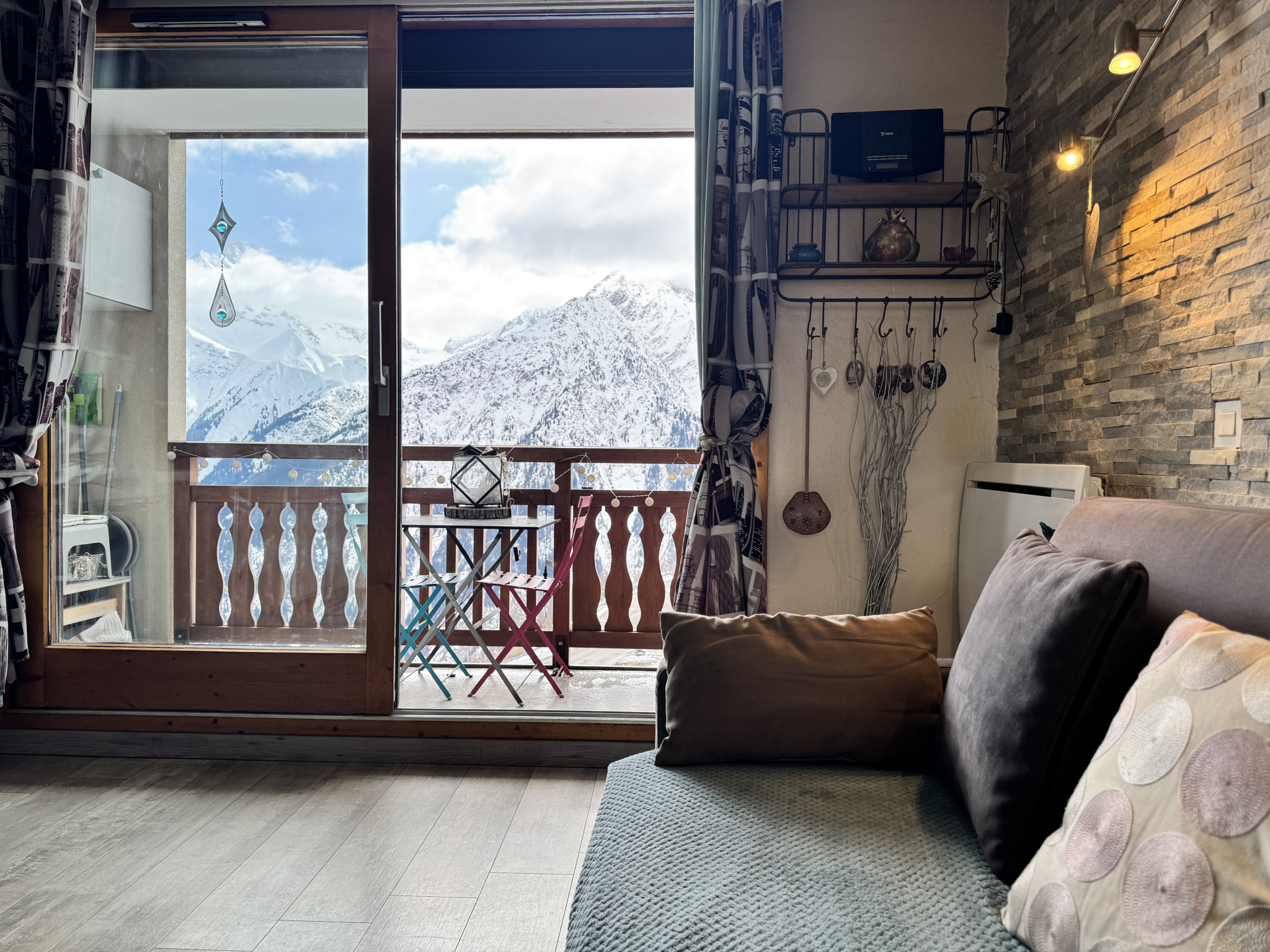 Cet extérieur devient alors un véritable balcon sur la montagne, idéal pour profiter du soleil et de la vue.