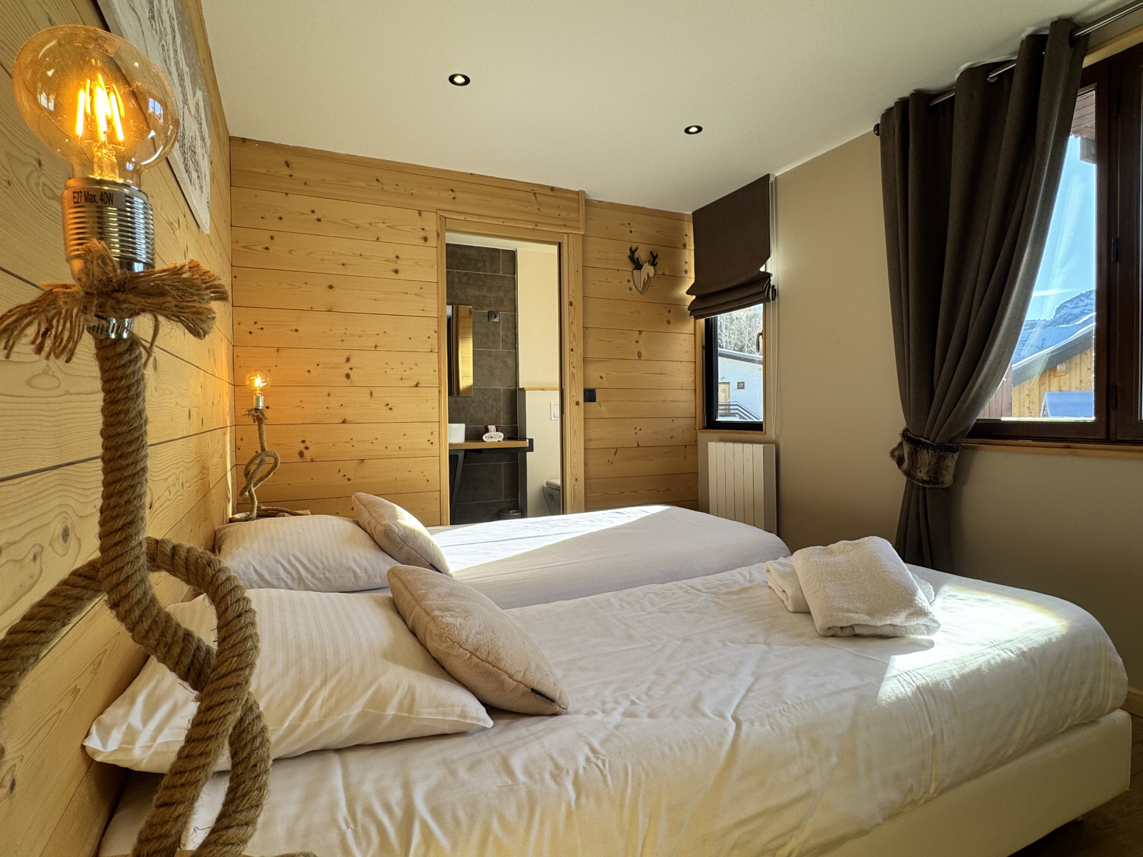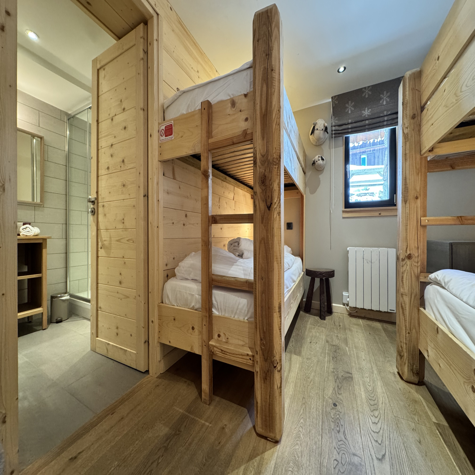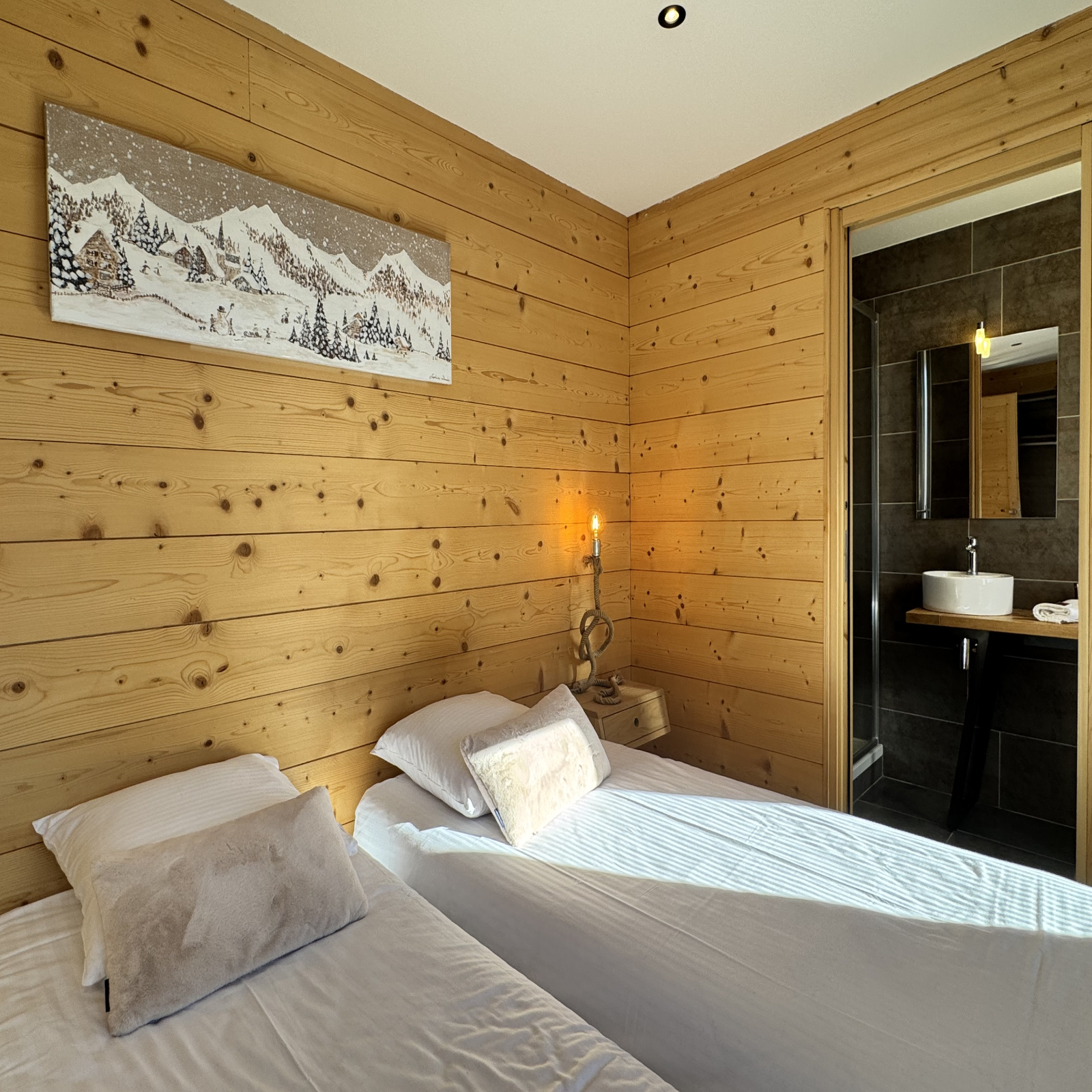 Avec ses 182 m² habitables, ce chalet propose un confort exceptionnel. Répartis sur plusieurs niveaux, 6 chambres lumineuses disposent chacune de leur propre salle d’eau et de leur toilette, garantissant une intimité parfaite à ses occupants.