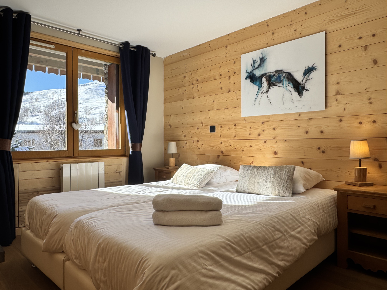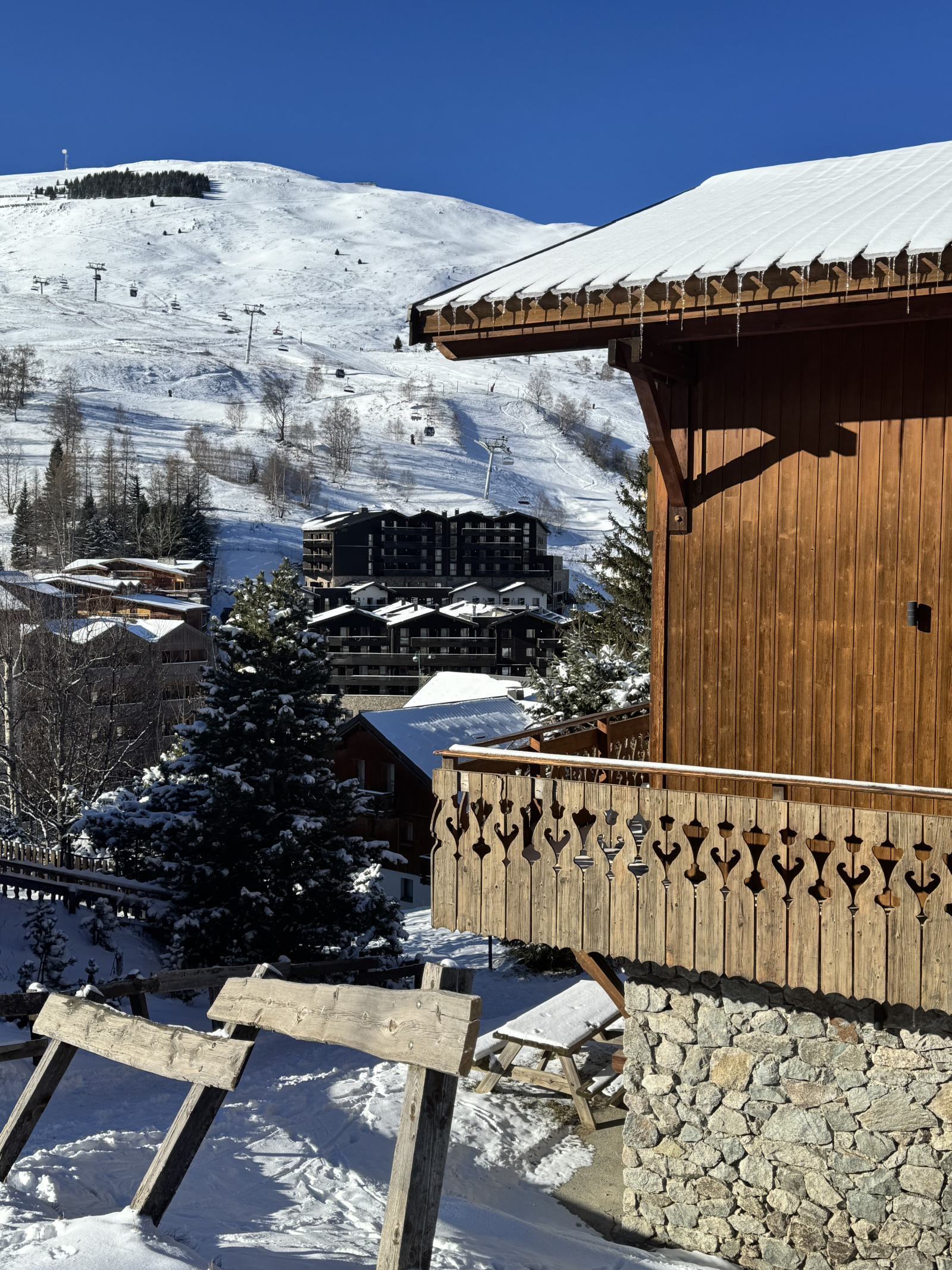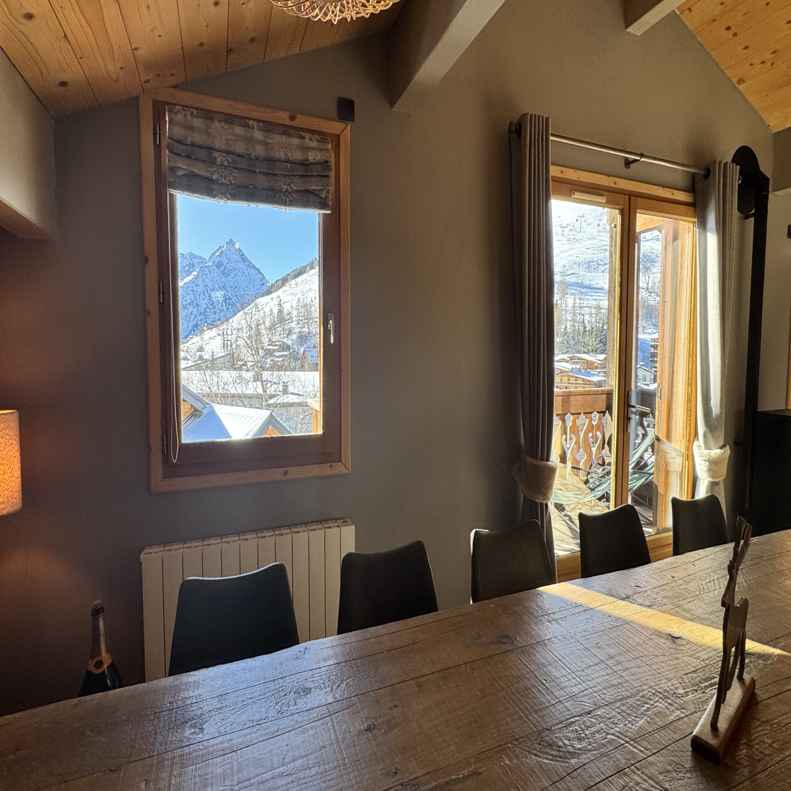 La pièce maîtresse ? Une somptueuse pièce de vie de 50 m², baignée de lumière grâce à une orientation plein sud. Vous y trouverez un poêle à granulés chaleureux, une belle hauteur sous plafond et un accès direct à un balcon offrant une vue panoramique sur la station et le glacier de la Muzelle.