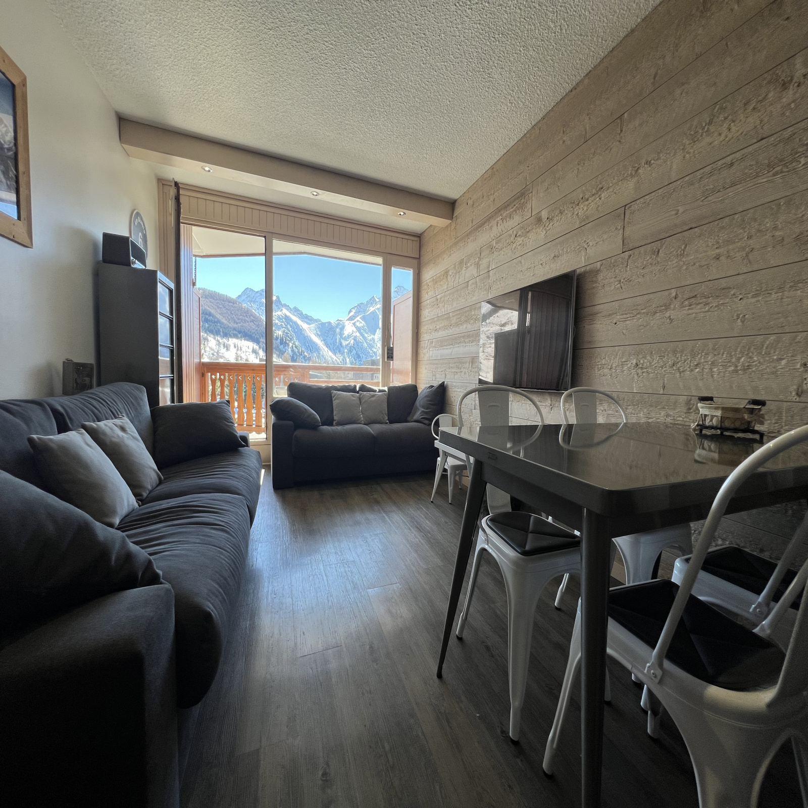 Idéalement perché au 4ème étage de la résidence Plein Sud, cet élégant studio offre une vue enchanteresse sur le glacier de la Muzelle et les pistes !