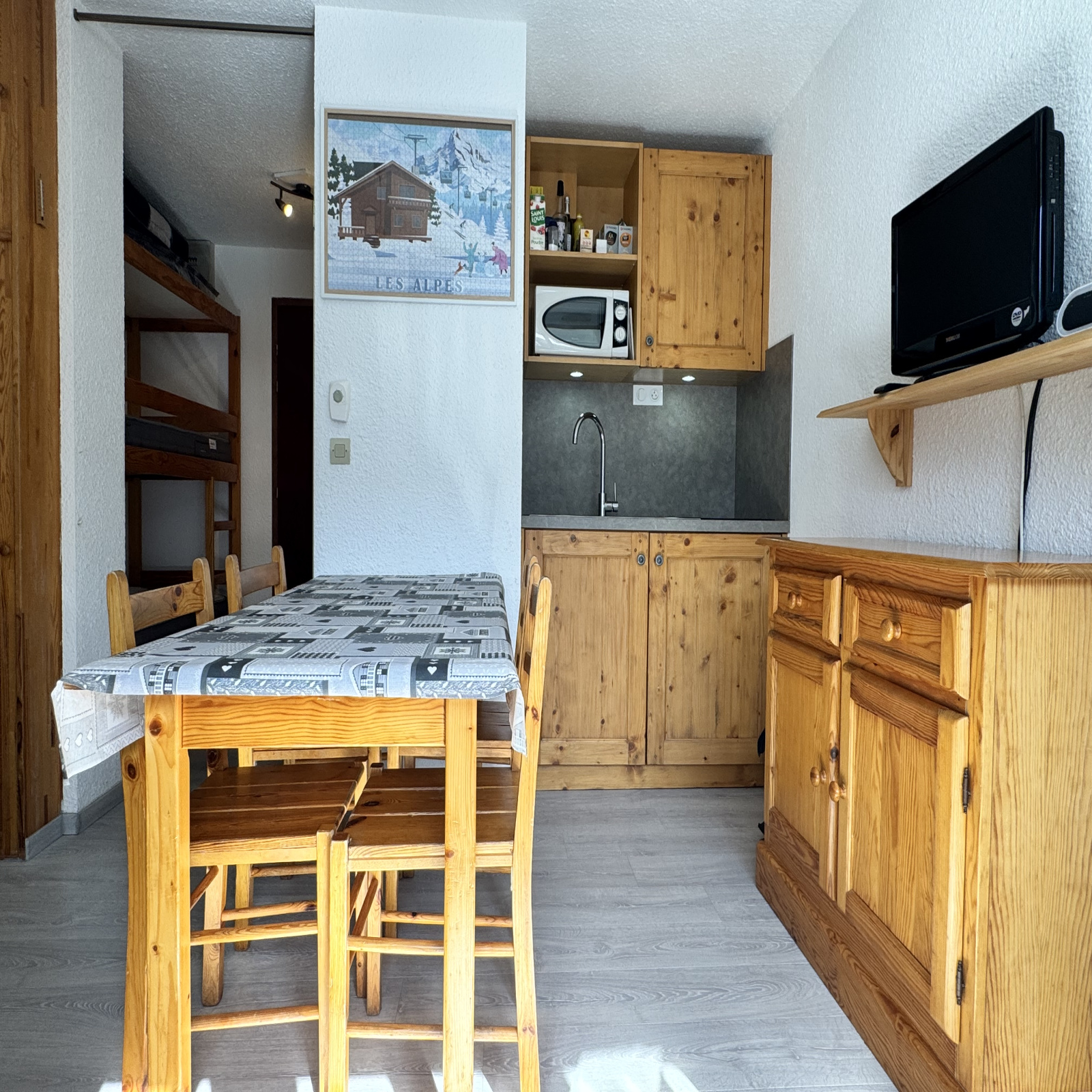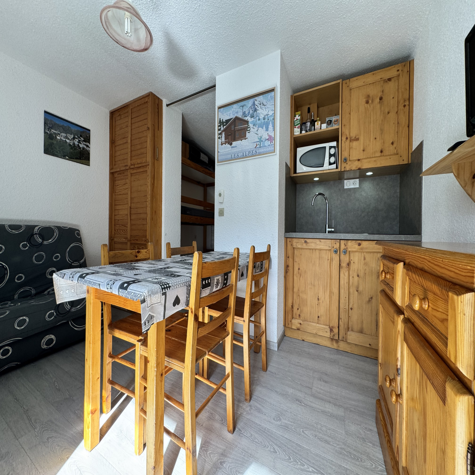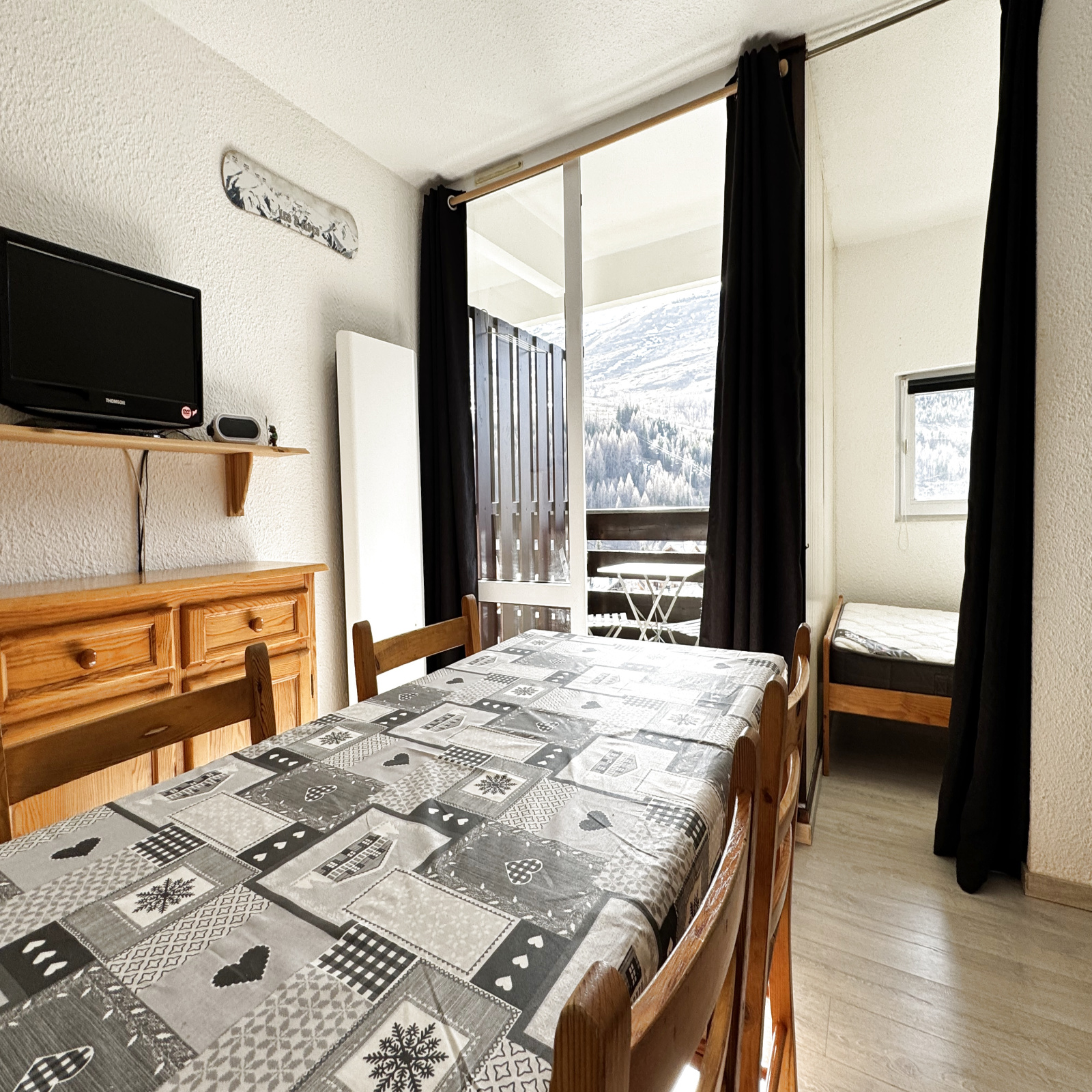 Sa kitchenette rénovée, sa salle d’eau modernisée avec WC séparés et son balcon exposé ouest offrant une vue dégagée sur les pistes de Vallée Blanche en font un pied-à-terre idéal.