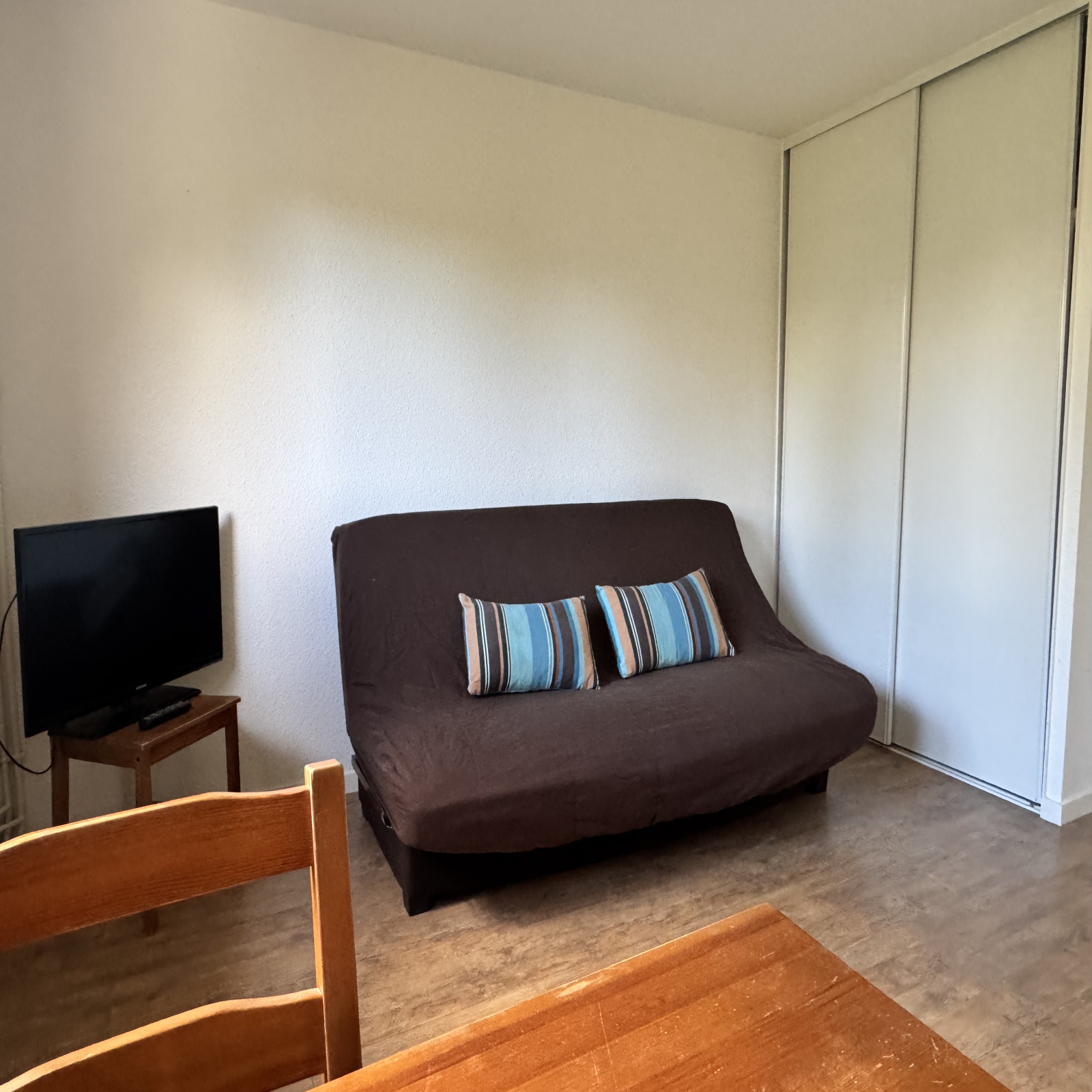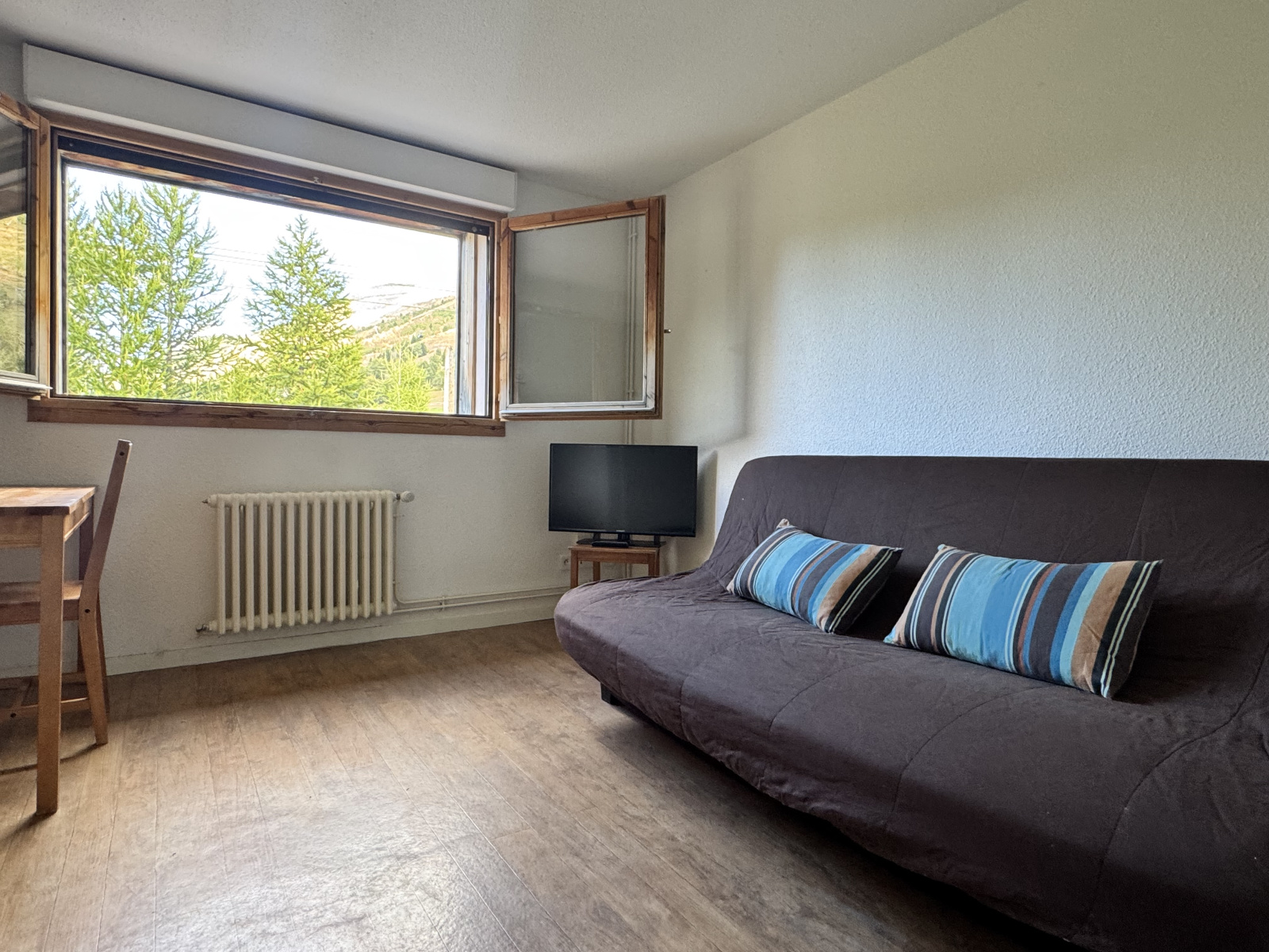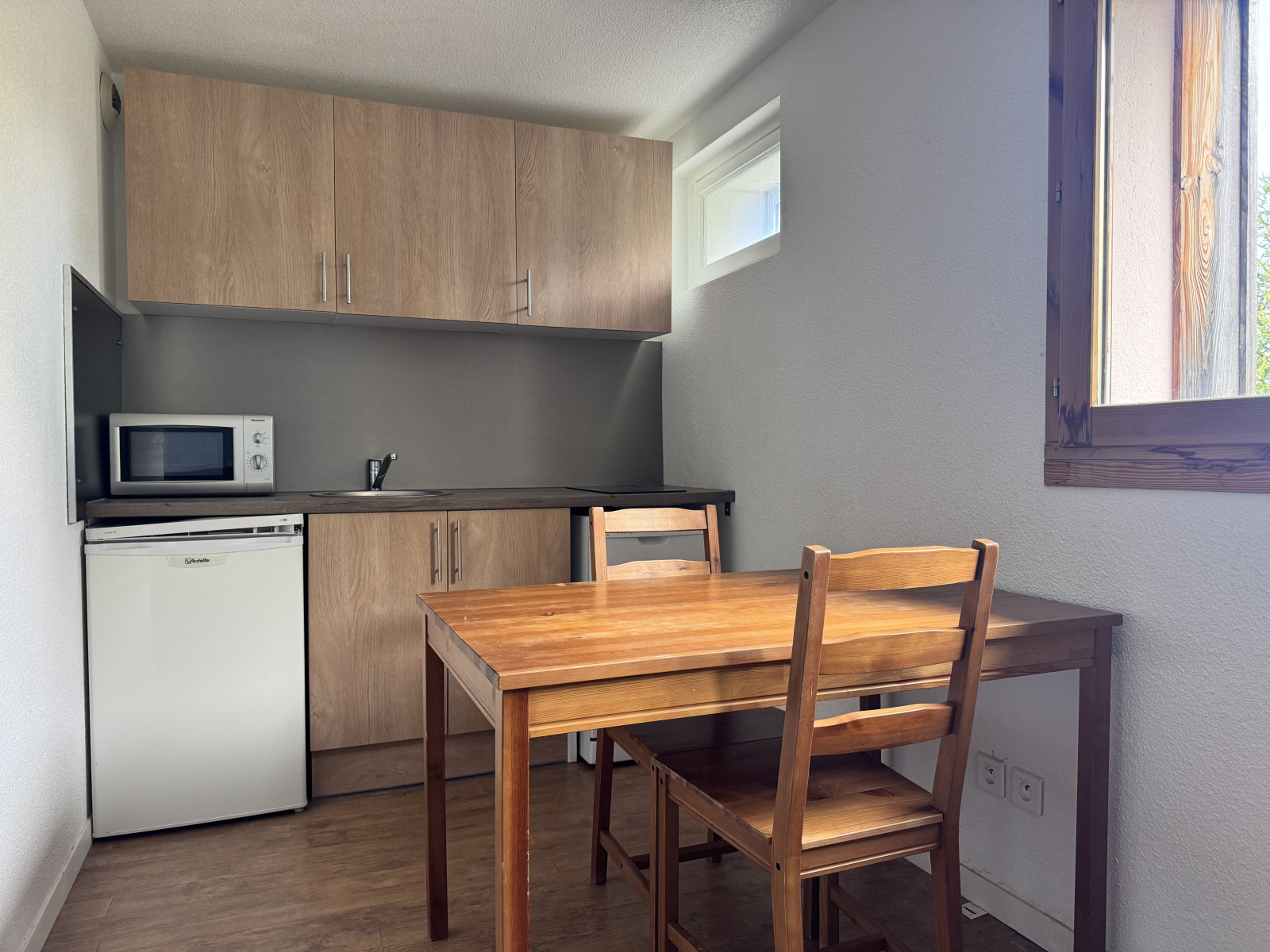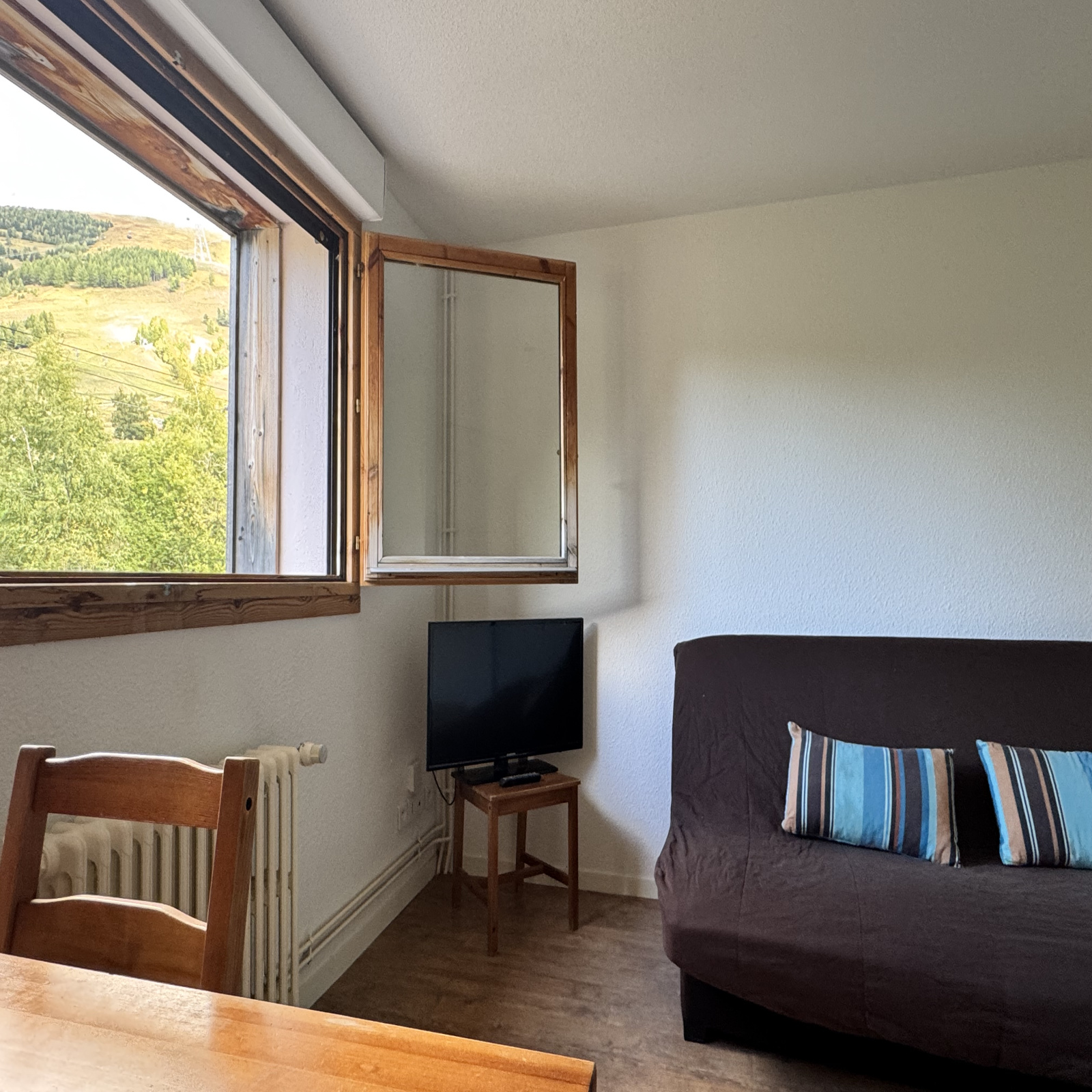L’appartement se compose d’une pièce de vie avec kitchenette, d’une salle d’eau avec WC et dispose d’un casier à skis. Situé au 3ème étage, il ne bénéficie pas d’ascenseur ni de balcon, mais offre un espace propre et fonctionnel, pensé pour accueillir 1 à 2 personnes comme dans une chambre d’hôtel de montagne.