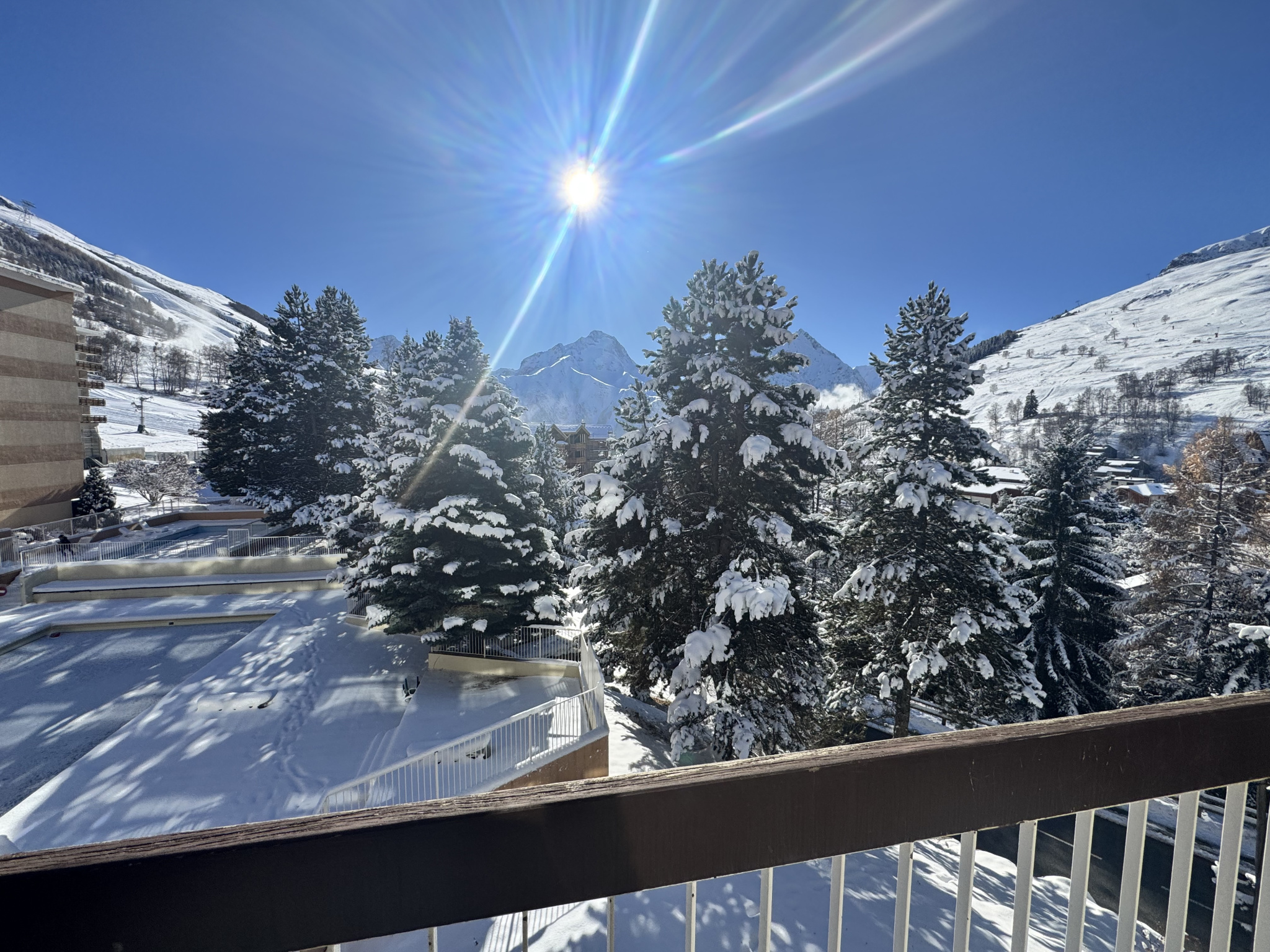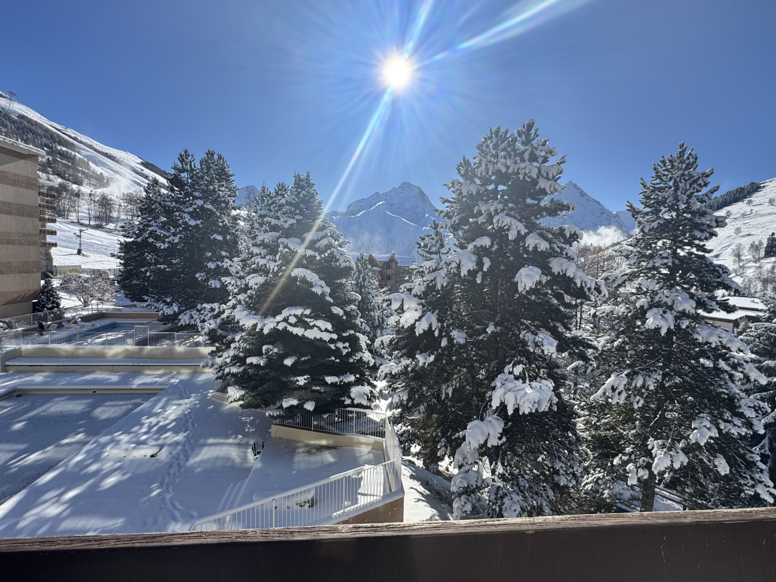 Elle dispose également d’une piscine extérieure chauffée en été, un atout très recherché pour la location saisonnière dans la station, où les résidences avec piscine sont très rares.