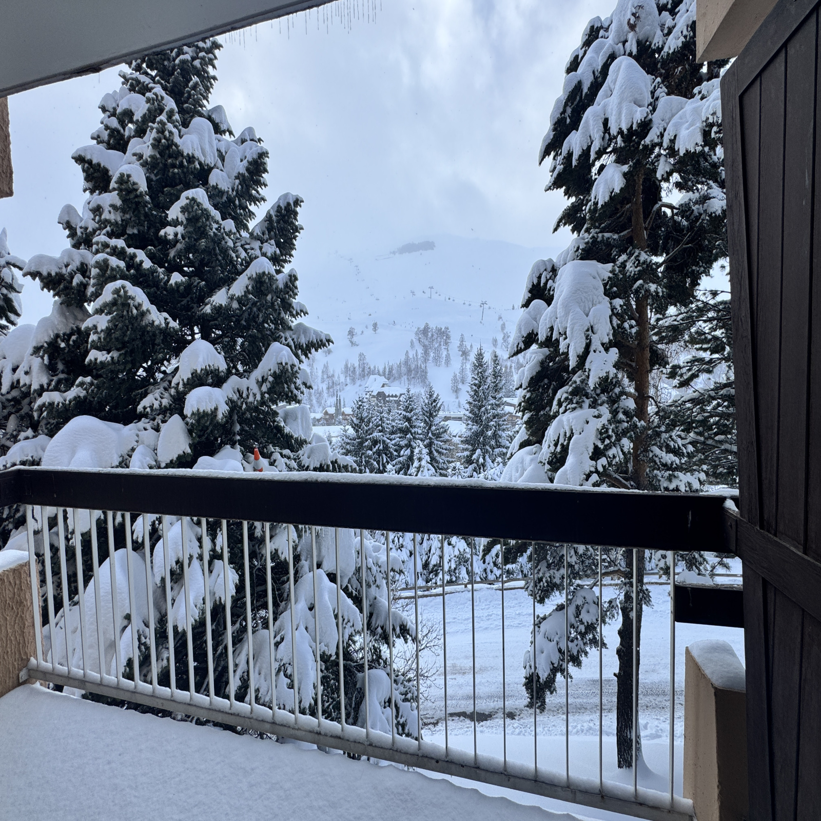 Une perspective ouverte sur la montagne et la lumière de l’après-midi, particulièrement appréciable après une journée de ski.