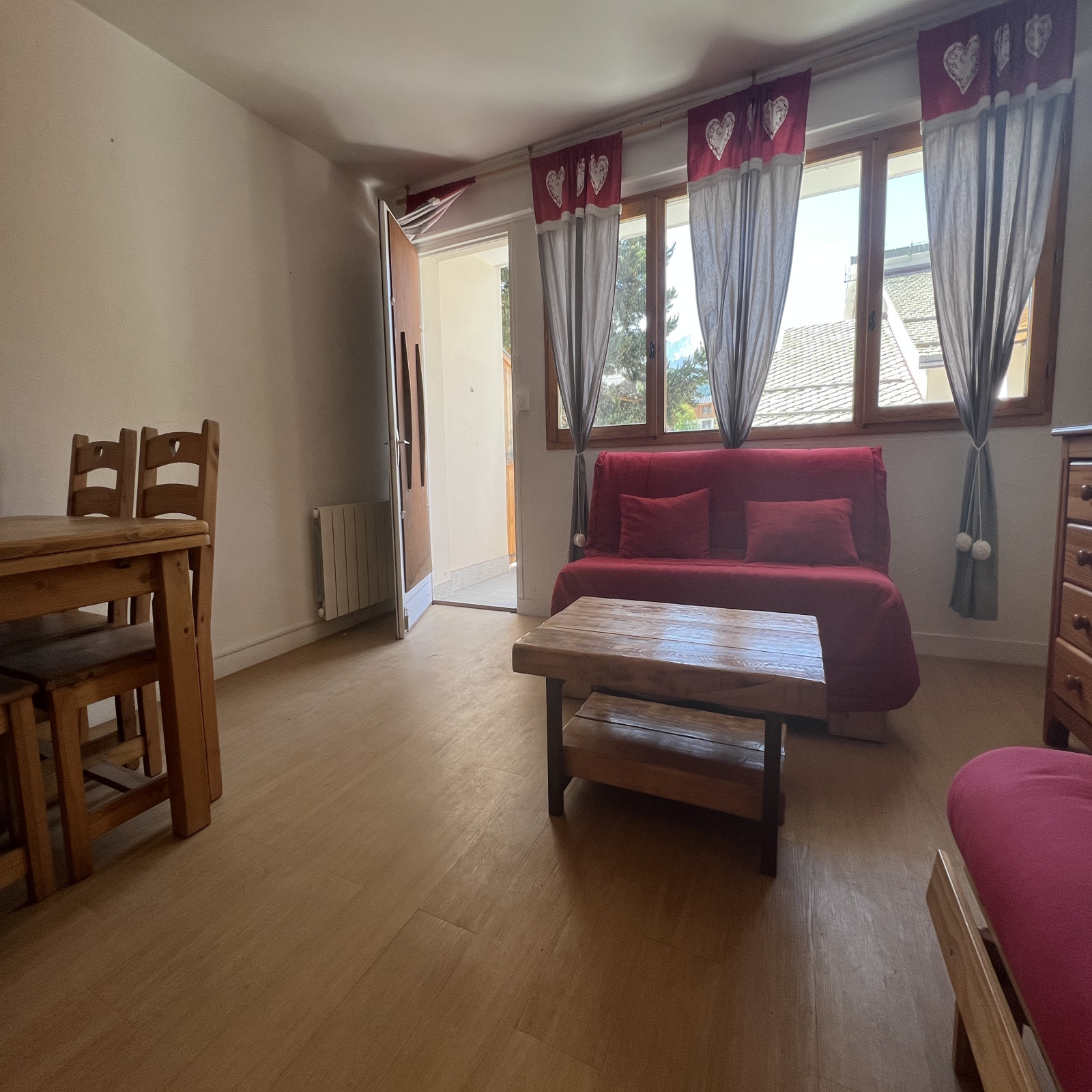Sa pièce à vivre spatieuse, son grand balcon carrelé, innondé de soleil ! son état et sa proximité des pistes.